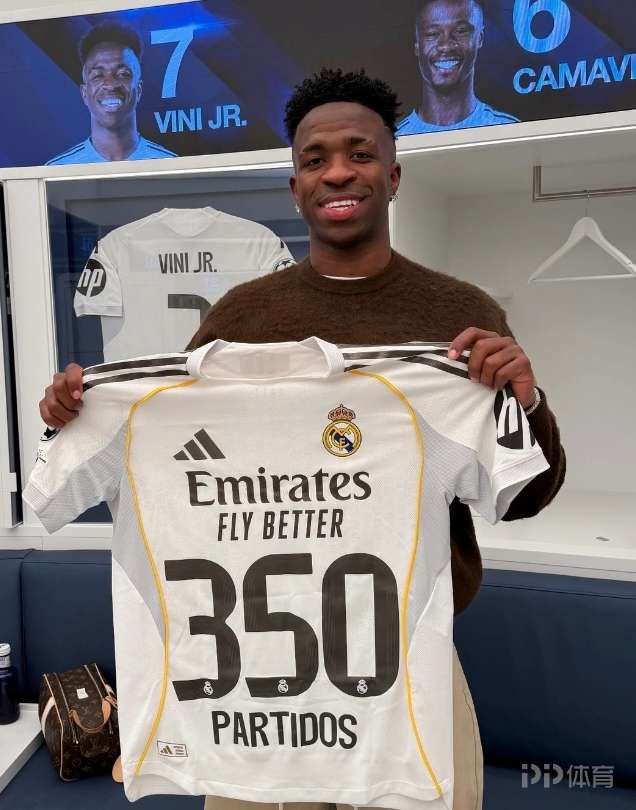 完成皇马生涯350场里程碑 维尼修斯社媒晒纪念球衣 足球新闻 2026-01-18 14:19 西甲第20轮比赛,维尼修斯踢满全场,皇马主场2-0击败莱万特。维尼修斯达成为皇马出战350场比赛里程碑,赛后他在社交媒体上晒出与纪念球衣的合照。维尼修斯总计为皇马打进112球,助攻94次。 责任编辑: 体育24小时热点 上一条:西甲-皇马2-0莱万特 姆巴佩点射阿森西奥破门 下一条:TA:切尔西青训出身却加盟热刺,蓝军球迷不满加拉格尔转会
